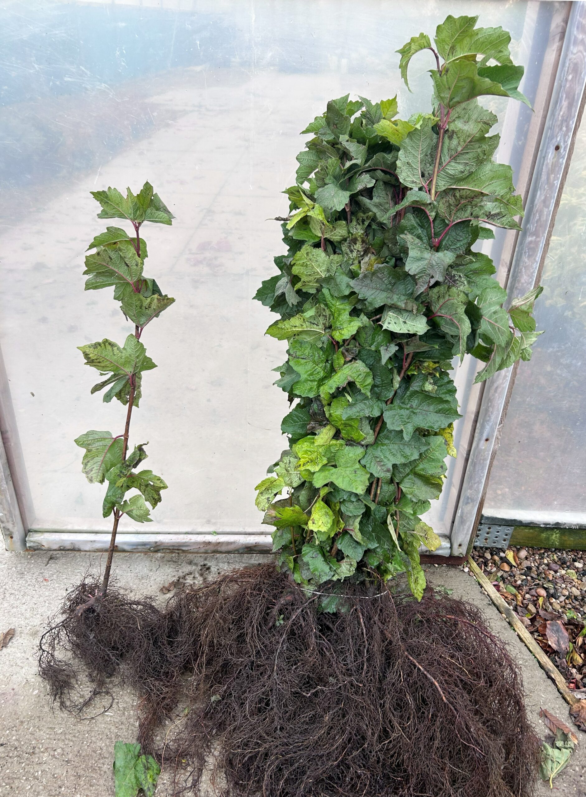 Guelder rose: Water elder. A large, vigorous, deciduous shrub of spreading habit, with maple like 3-5 lobed leaves, with rich autumn colours. Flattened corymbs appear in June or July, and are edged with showy white ray florets, giving an effect similar to lace-cap hydrangeas, which are followed in autumn by shining red, translucent fruits, lasting long into the winter. This is a familiar native of hedgerows and suitable in wet or boggy situations. Plant in all types of moist, well drained soil, in full sun or partial shade. Hardiness rating H6.
