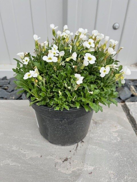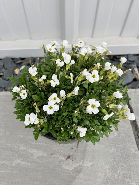 An evergreen, mat-forming perennial to around 10cm high, with small, grey green hairy leaves.   Masses of white, four-petalled flowers are produced from April to June.   This plant is ideal for ground cover, pots and edges of borders and will provide nectar and pollen for bees and many other types of pollenating insects.   Plant in all types of moist, well drained alkaline or neutral soil in full sun.   Hardiness rating H6.