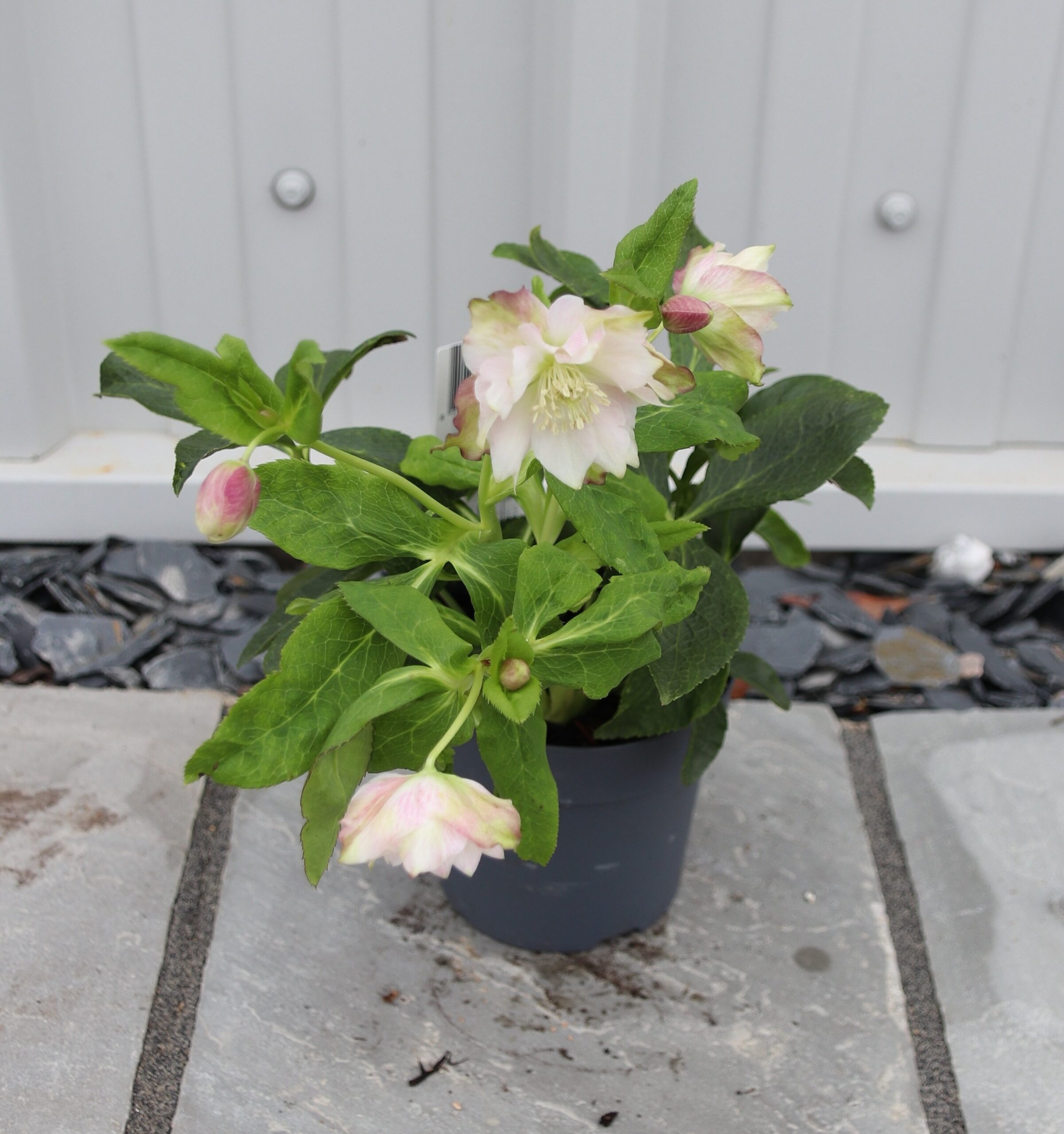 Lenten rose: A clump-forming semi-evergreen perennial with leathery, divided, mid-green foliage. The frilly, double, pink flowers open with soft, layered petals, bringing a burst of colour to borders during the cold winter months and into early spring, and attracting bees to the garden. These plants thrive in well-drained semi-shaded borders and woodland gardens and beneath taller shrubs where other plants fail to grow. Plant in moist, well drained alkaline or neutral soil in semi-shade. Hardiness rating H7.