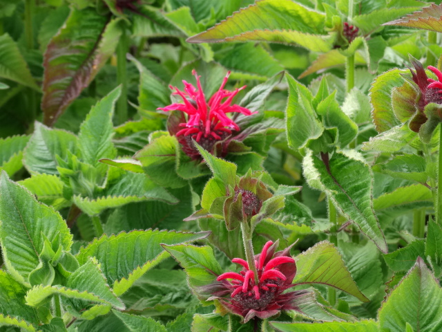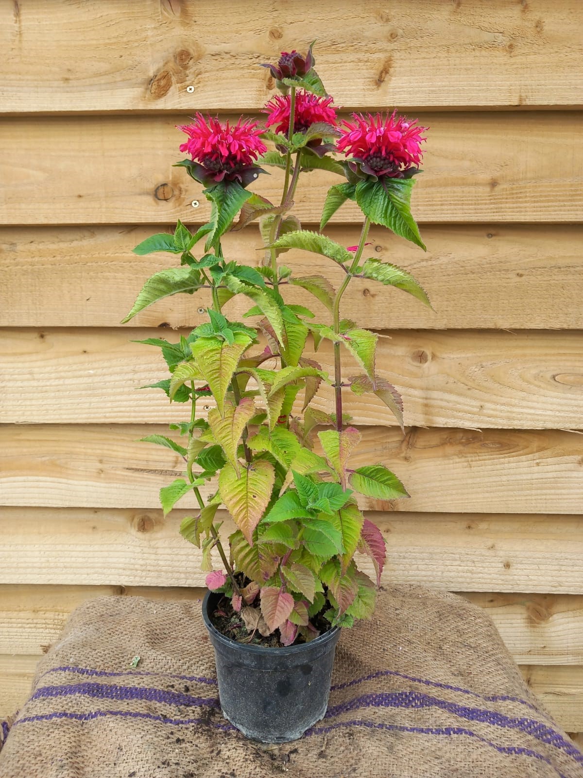 A clump forming herbaceous perennial up to 90cm with medium to deep green, aromatic ovate- lanceolate shaped leaves with serrated margins which have terminal whorls of rose pink, two lipped flowers, produced from mid to late summer. Leaves emit a minty fragrance when crushed. Dead head regularly and cut down stems to ground level in early autumn. Plant in full sun or partial shade in humus rich, light, moist well drained soil. Protect from wet during winter, but do not allow to dry out during summer. Hardiness rating is H5.