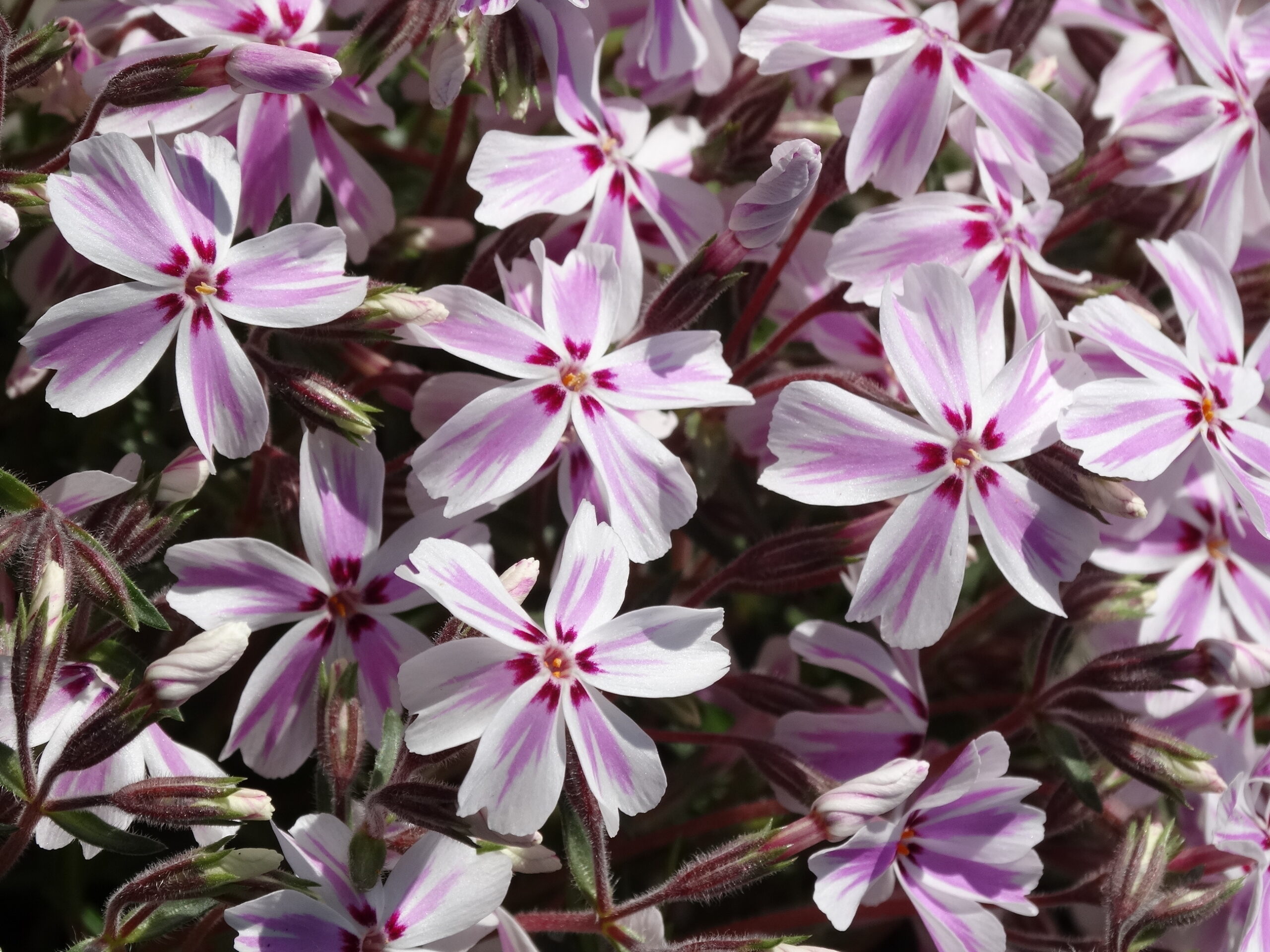 Phlox subulate ‘Candy Stripe’ Creeping Phlox; Moss Phlox: An evergreen, hardy ground cover perennial with a creeping habit forming a weed-suppressing mat, thriving in a sunny position.   White, delicate pink candy striped flowers are borne in profusion in early spring and summer, and are attractive to bees, butterflies and other pollinating insects.   This plant thrives in a sunny position, brightening up rockeries, borders and low walls.   Plant in all types of moist, well drained soil in full sun.  Hardiness rating H5. At certain times of the year the trees and plants that you buy from us may not look like the images shown on our website, this may be due to deciduous leaves falling, or the plant finishing flowering. All photographs on our website are of our own grown stock, or in the case of Italian specimens or bare root hedging, these are photographs of the plants actually in stock.