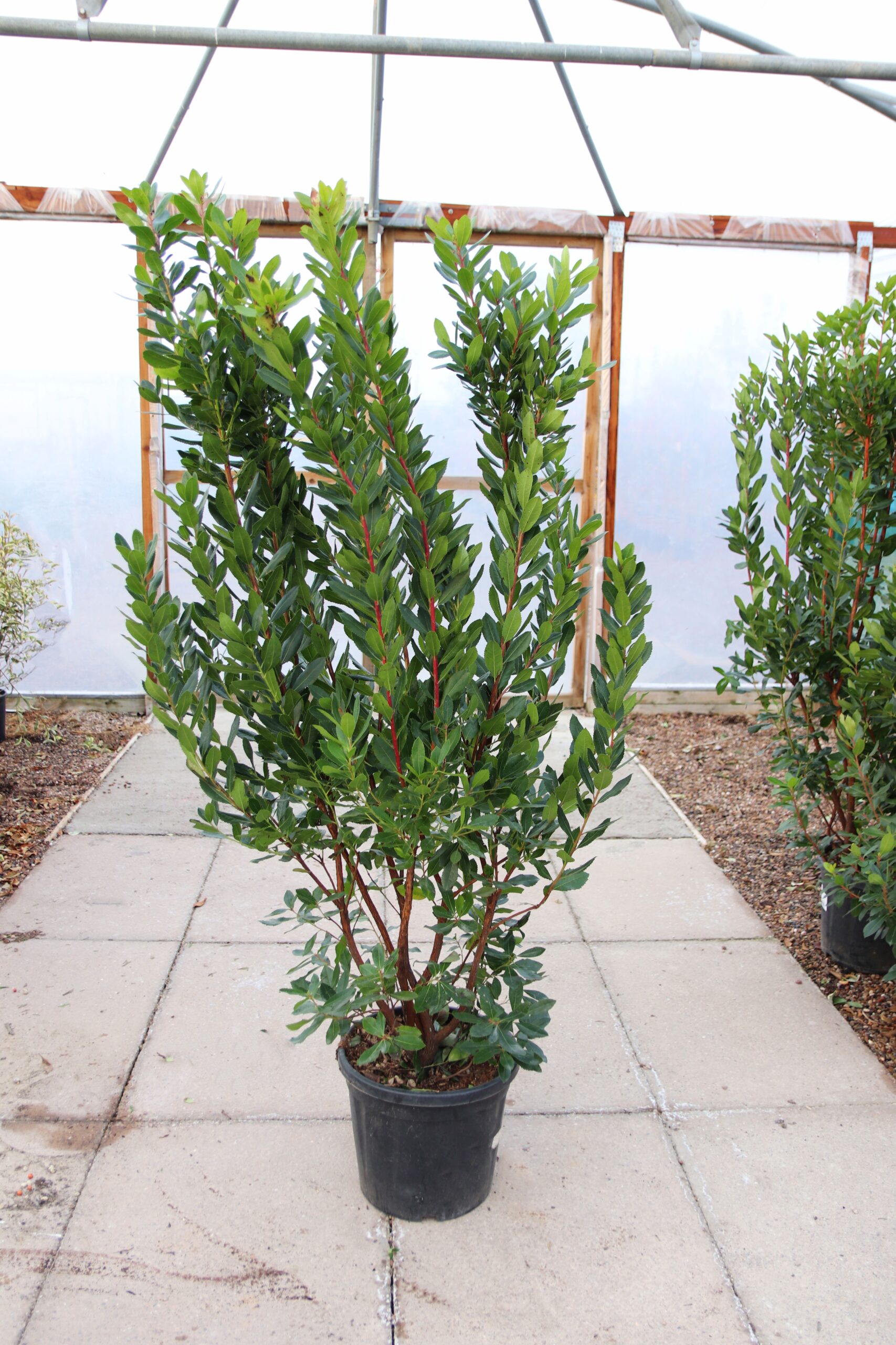 Killarney Strawberry Tree: An evergreen large, spreading shrub or small tree, often with an old gnarled appearance on mature plants, with deep brown shredded bark, and mid-green leathery leaves. Pitcher shaped white flowers, sometimes pink tinged, appear in panicles up to 5cm long, whilst simultaneously, strawberry-like edible red fruits from the previous year’s flowers, ripen, although the plants are usually grown for ornamental purposes in the UK. Plant in moist, well drained acid, alkaline or neutral soil, in full sun. Hardiness rating H5.