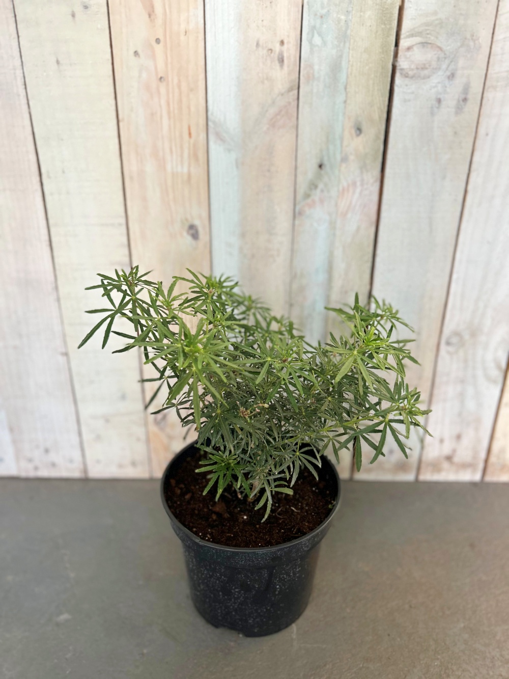 Choisya x dewitteana ‘White Dazzler’ Mexican Mock Orange:  An elegant, evergreen, small shrub forming a compact mound, with aromatic, very slender dark green leaves which are divided into 3 to 5 slender leaflets.   Masses of fragrant white flowers appear in clusters during spring, and again in late summer and autumn.   Plant in moist, well drained acid, alkaline or neutral soil, in full sun.   Hardiness rating H4.