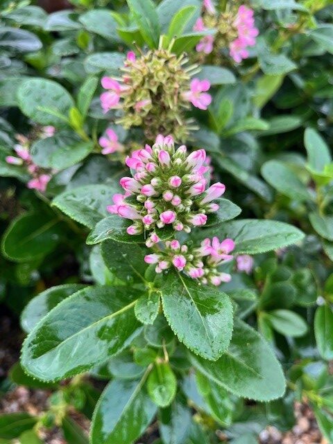 A compact, bushy evergreen shrub producing large heads of mid-pink flowers during summer, and again, less prolifically during autumn. Ideal for low informal hedges or patio planters. Plant in moist, well drained soils, avoiding clay, in full sun or partial shade. Hardiness rating H3.