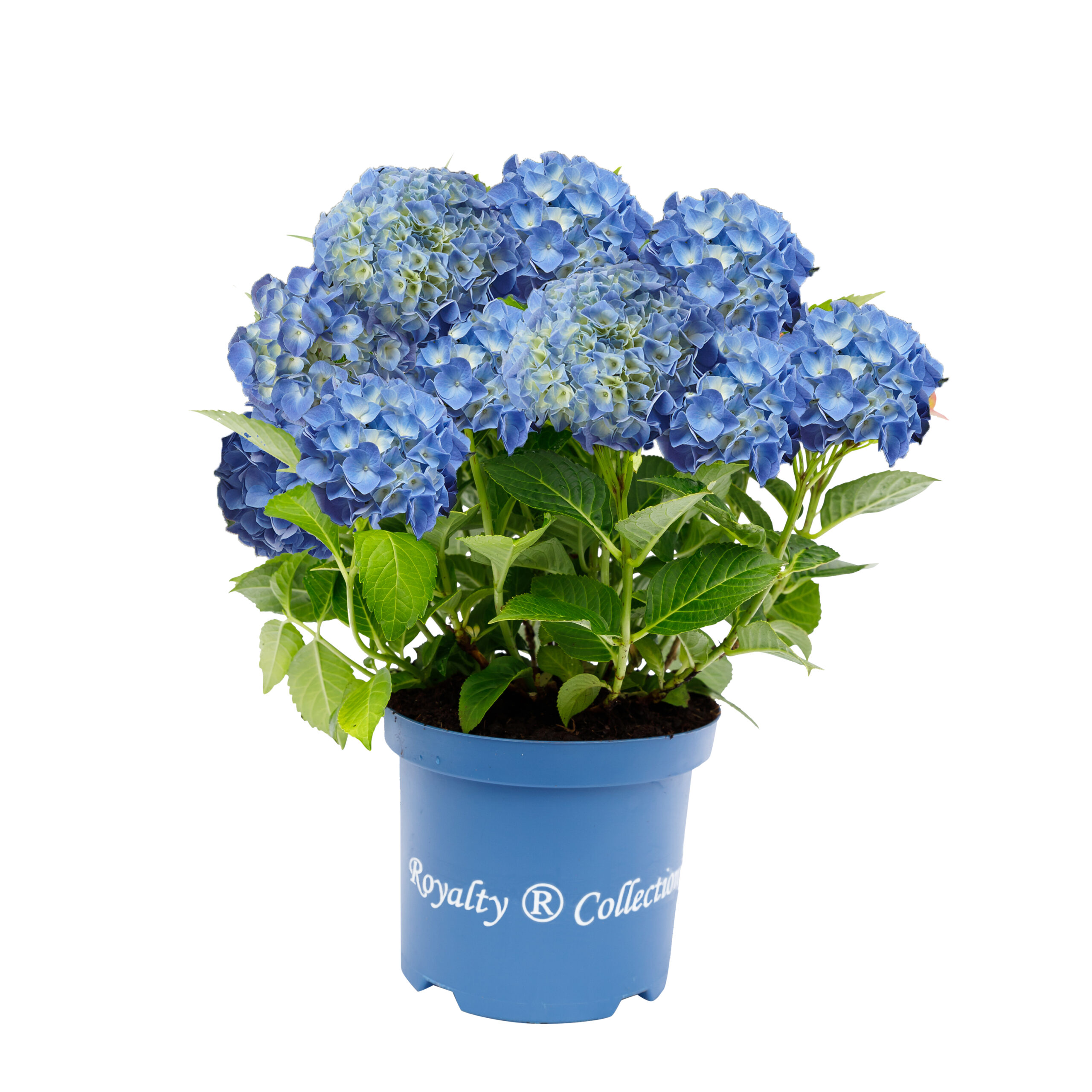 Hydrangea macrophylla ‘Fabolo Blue’ – Part of the Royalty Collection A small, deciduous, hardy shrub with dark glossy green leaves.   Beautiful, uniform single blue florets form large mop head flowers from June to September.   Plant preferably  in shade with morning sun only.   Requires an acid soil to obtain blue flowers. A new variety of hydrangea, a small and compact, deciduous, hardy shrub with glossy green leaves.   The mophead florets bloom in different colours from pale blue/white with pale green centres, maturing to bright blue florets during summer, so no two blooms are the same.  Thrives in moist fertile acid, alkaline or neutral soils, in full sun or partial shade.   To retain the deepest blue flowers throughout the season we recommend the use of Hydrangea Colourant.   Suitable for planting in pots, baskets and borders.   Remove old flower heads in spring to encourage abundant flowering.   Water frequently.   Hardiness rating H5. At certain times of the year the trees and plants that you buy from us may not look like the images shown on our website, this may be due to deciduous leaves falling, or the plant finishing flowering. All photographs on our website are of our own grown stock, or in the case of Italian specimens or bare root hedging, these are photographs of the plants actually in stock.