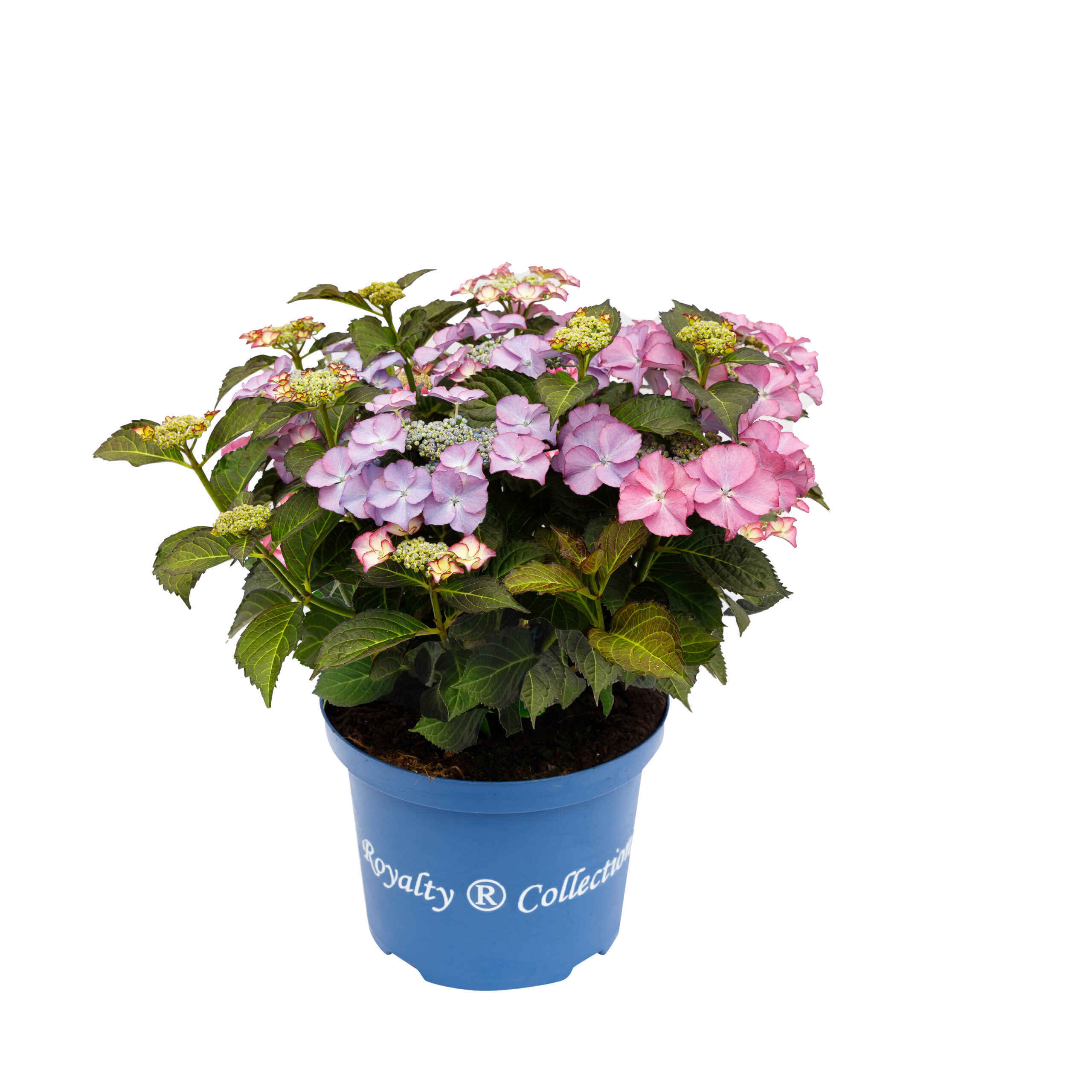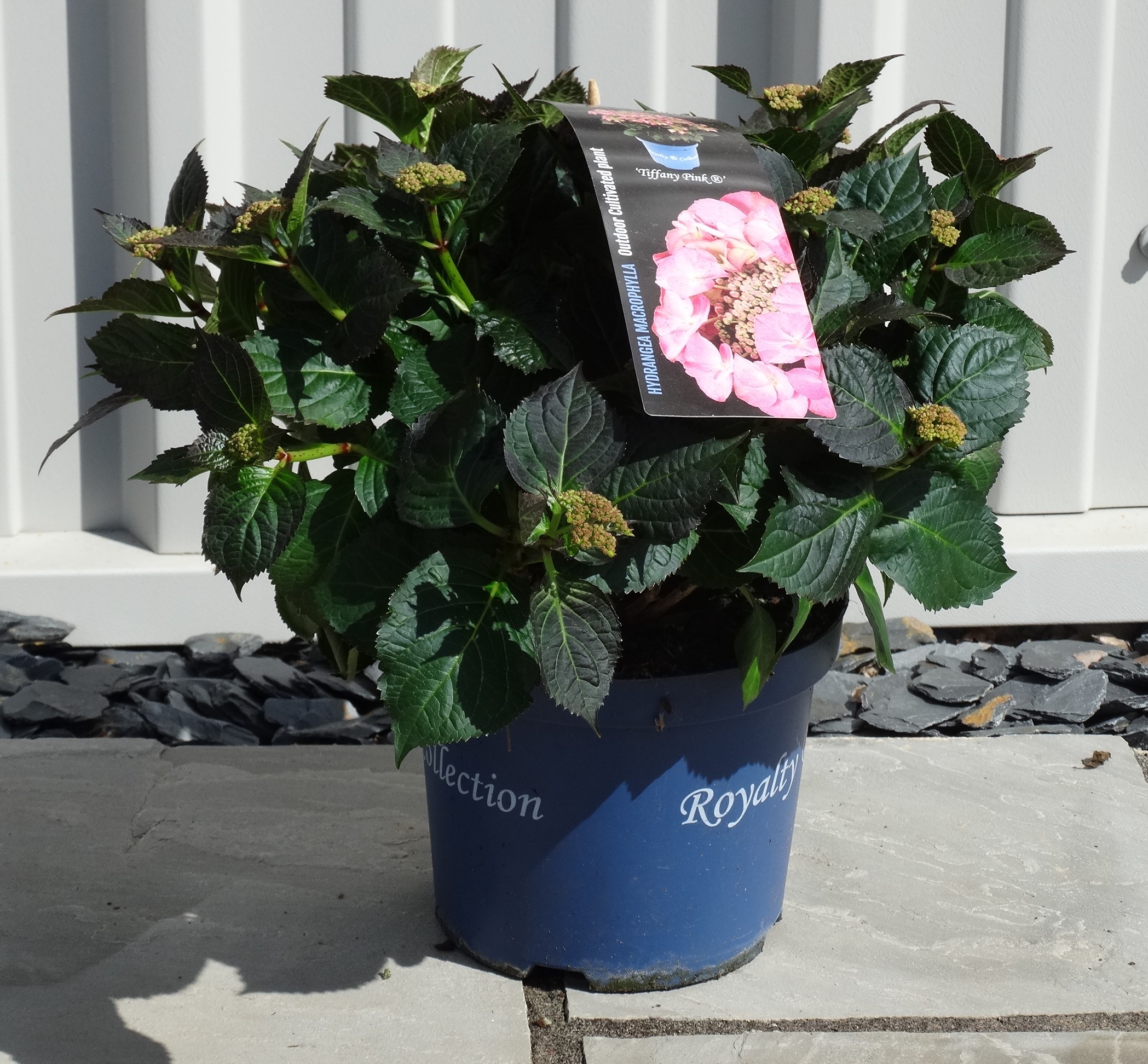 Hydrangea mac. Tiffany Pink – part of the Royalty Collection A new variety of hydrangea, a small and compact, deciduous, hardy shrub with glossy green leaves.   The large mophead florets bloom pink, shading to white centres on each flower head during summer, so no two blooms are the same.  Thrives in moist fertile acid, alkaline or neutral soils, in full sun or partial shade.  Suitable for planting in pots, baskets and borders.   Remove old flower heads in spring to encourage abundant flowering.   Water frequently.   Hardiness rating H5. At certain times of the year the trees and plants that you buy from us may not look like the images shown on our website, this may be due to deciduous leaves falling, or the plant finishing flowering.  All photographs on our website are of our own grown stock, or in the case of Italian specimens or bare root hedging, these are photographs of the plants actually in stock.