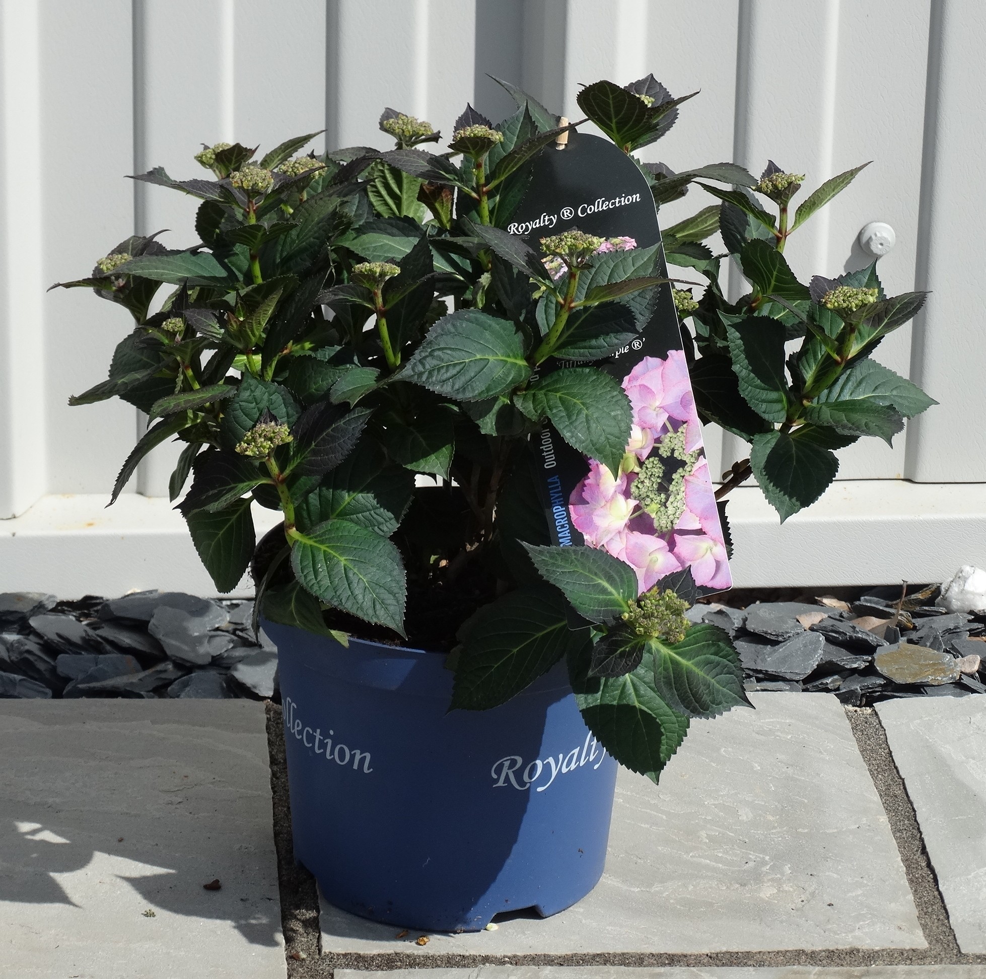 Hydrangea macrophylla ‘Tiffany Purple’ – Part of the Royalty Collection A new variety of hydrangea, a small, deciduous hardy shrub growing up to 1.5m high, with dark green, bronze tinted leaves.   Lace-cap flower heads are produced in summer with clusters of tiny fertile flowers, surrounded by large, bi-coloured purple-blue florets, shading to green and cream which are nearly white in the centre, and flushed and edged with bright pink or violet flowers depending on whether the pH of the soil is alkaline or acid.   Plant in sun or partial shade.   Thrives in moist, well drained fertile acid, alkaline or neutral soils, in full sun or partial shade.  Suitable for planting in pots, baskets and borders.   Remove old flower heads in spring to encourage abundant flowering.   Water frequently.   Hardiness rating H5. At certain times of the year the trees and plants that you buy from us may not look like the images shown on our website, this may be due to deciduous leaves falling, or the plant finishing flowering. All photographs on our website are of our own grown stock, or in the case of Italian specimens or bare root hedging, these are photographs of the plants actually in stock.