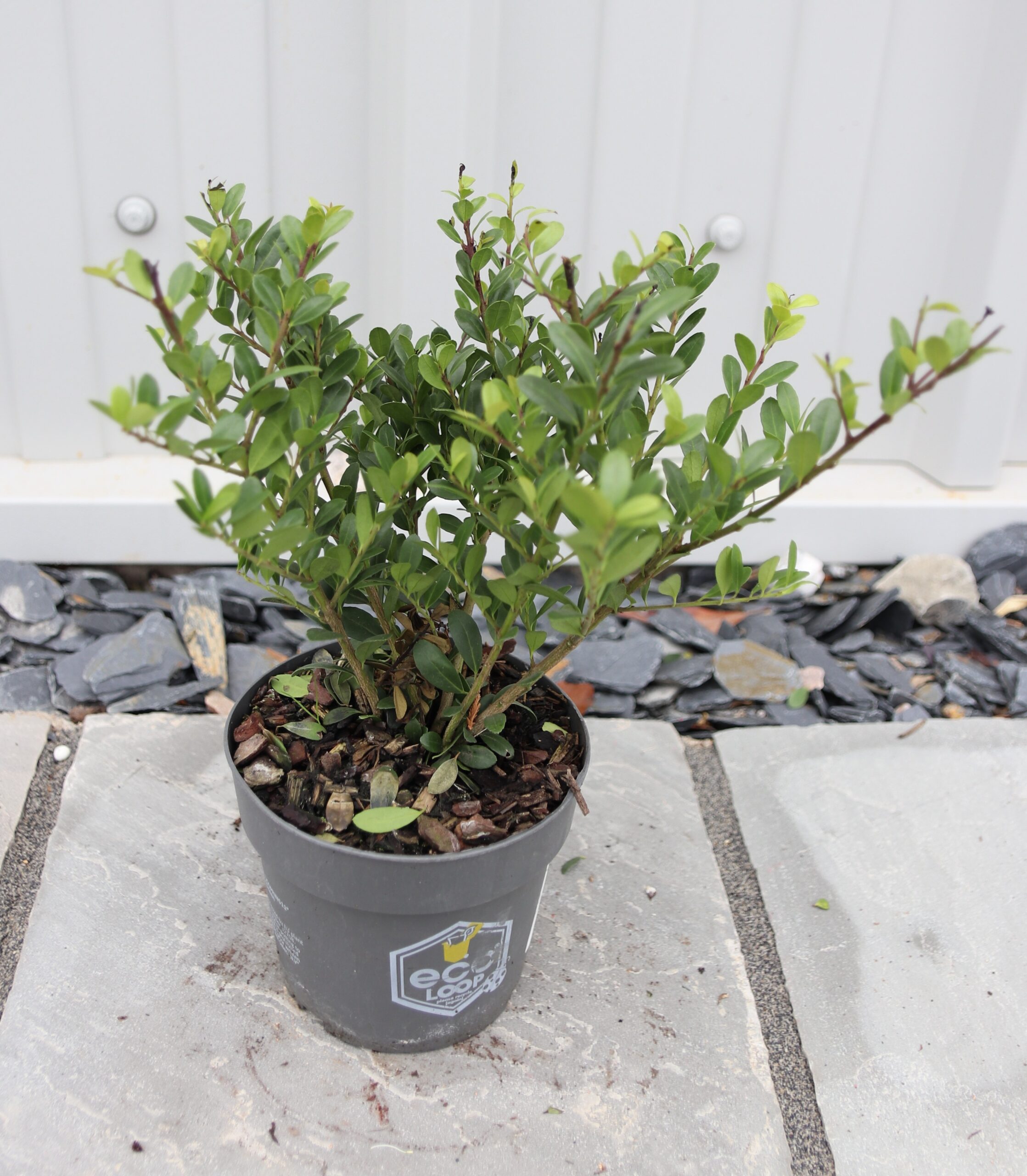 Japanese holly: An evergreen shrub or small tree of slow growth, reaching around 4 meters in 10-20 years, with small, glossy dark green leaves up to 2cm long. Clusters of small white flowers appear in spring followed by black berries in autumn. This is an excellent plant for small, clipped hedges and topiary, and is now regularly planted as a substitute for box. Plant in moist, well drained acid, alkaline or neutral soil, in full sun or partial shade. Hardiness rating H6.