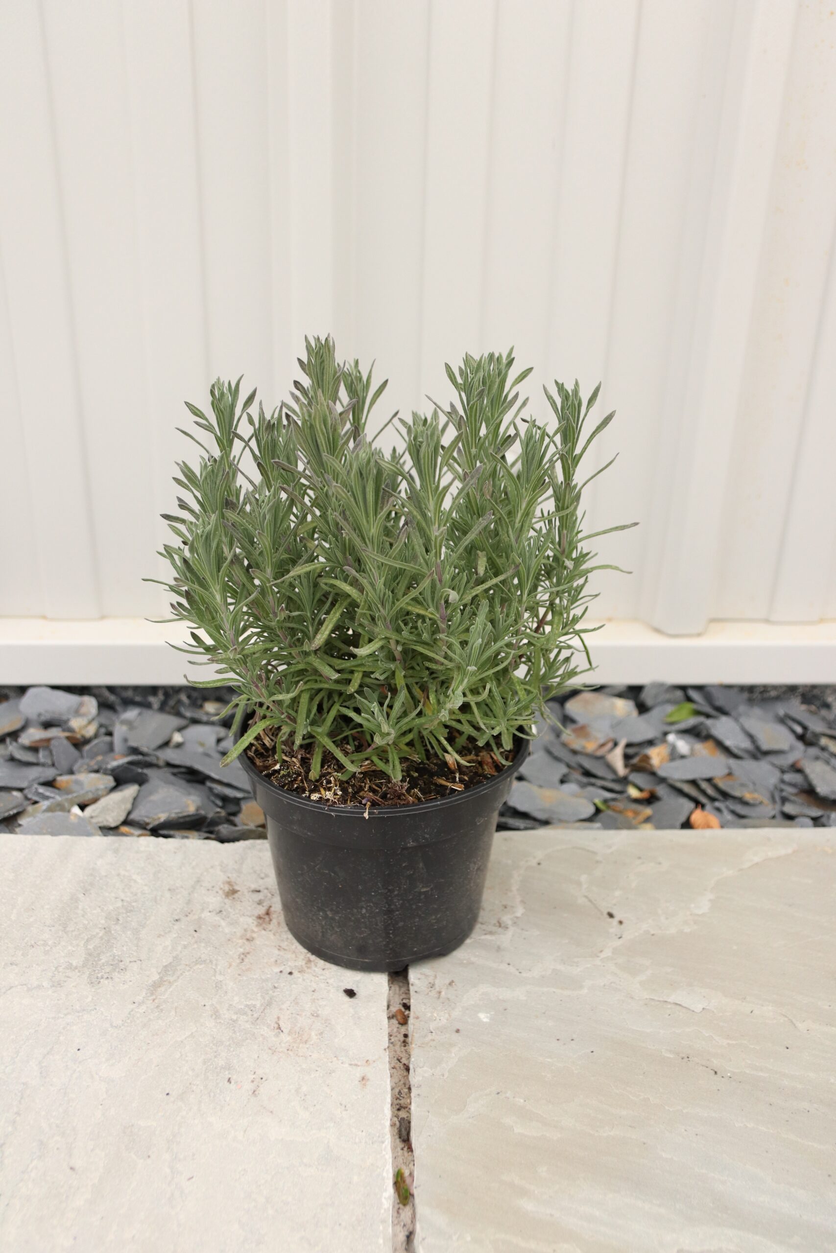 French lavender: A dwarf, compact, bushy evergreen shrub growing up to around 40cm high, with aromatic narrow, grey-green leaves. Small fragrant dark purple flowers, topped with feathery purple bracts, are carried on slender upright stems in summer. Plant in moist, well drained acid, alkaline or neutral soil in full sun. Drought resistant when established. Hardiness rating H4.