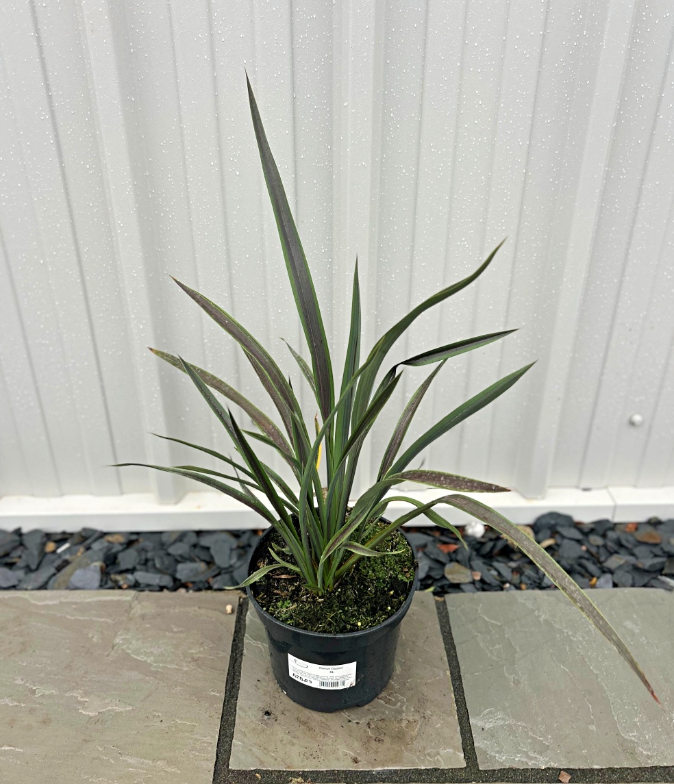 Phormium ‘Chocomint’ is a bold, architectural New Zealand flax that brings year-round structure and colour to the garden. Its upright, sword-shaped leaves are a rich chocolate brown, sharply edged with cool mint-green margins, creating a striking contrast that works beautifully in contemporary and coastal planting schemes.