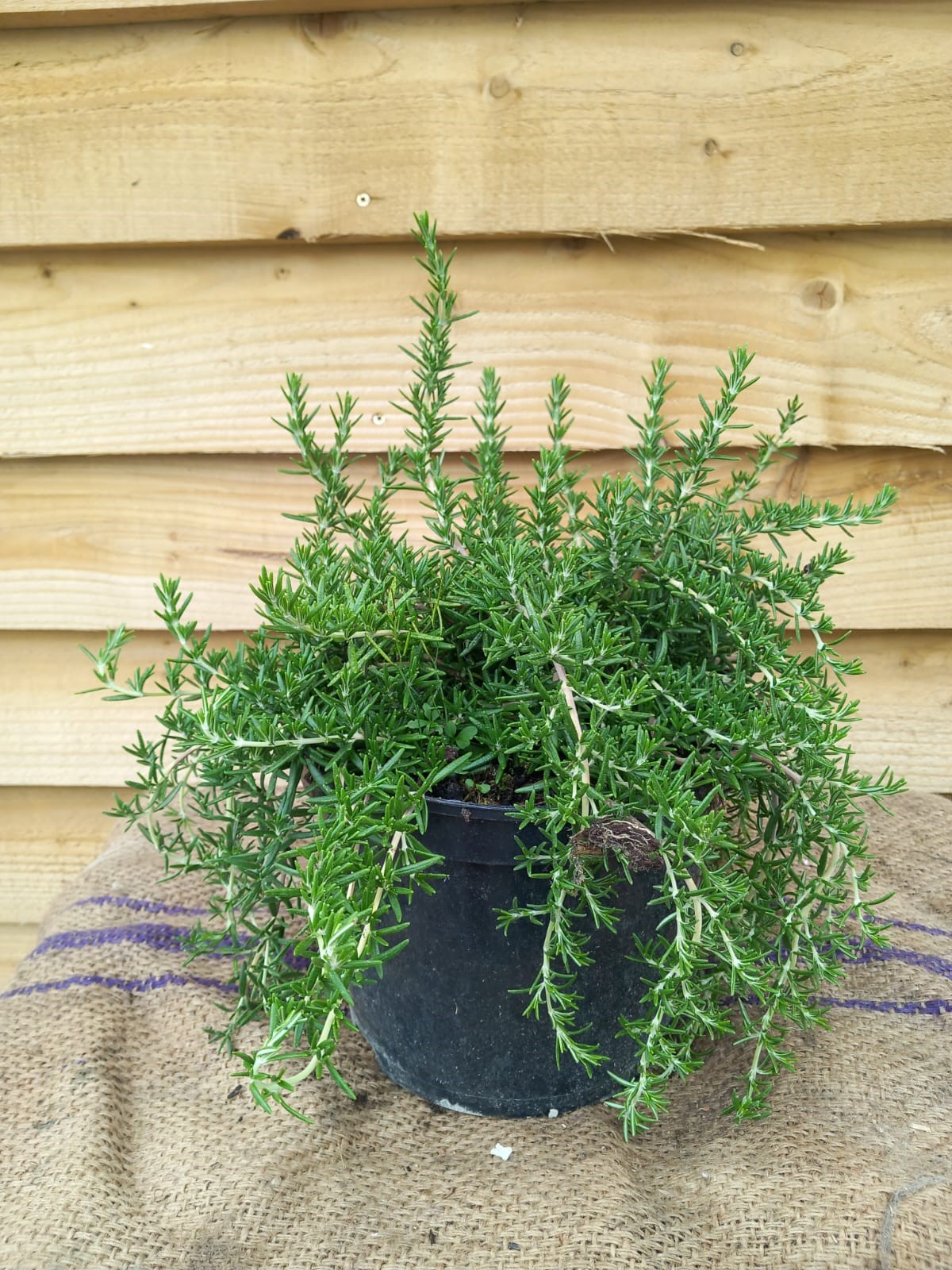 Prostrate Rosemary - A compact, low growing, prostrate, evergreen shrub with forming large, dense mats with clusters of blue flowers in May and June. Plant in moist, well drained soil, but avoid clay. Drought tolerant. Plant in full sun in a sheltered position. Hardiness H4.