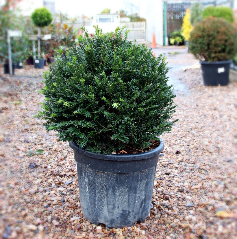 English Yew/Common Yew:  One of only three British native conifers.   An evergreen, small to medium sized tree, or large shrub, with dark green or almost black-green leaves up to 3cm long.   Small, insignificant flowers are produced on female plants, followed by fleshy red fruits.   A well-known tree, often found in churchyards.   If planted in well drained loam, yew will grow on almost pure chalk, or in very acid soils.   Plant in full or partial shade or full sun.   Hardiness rating H7.