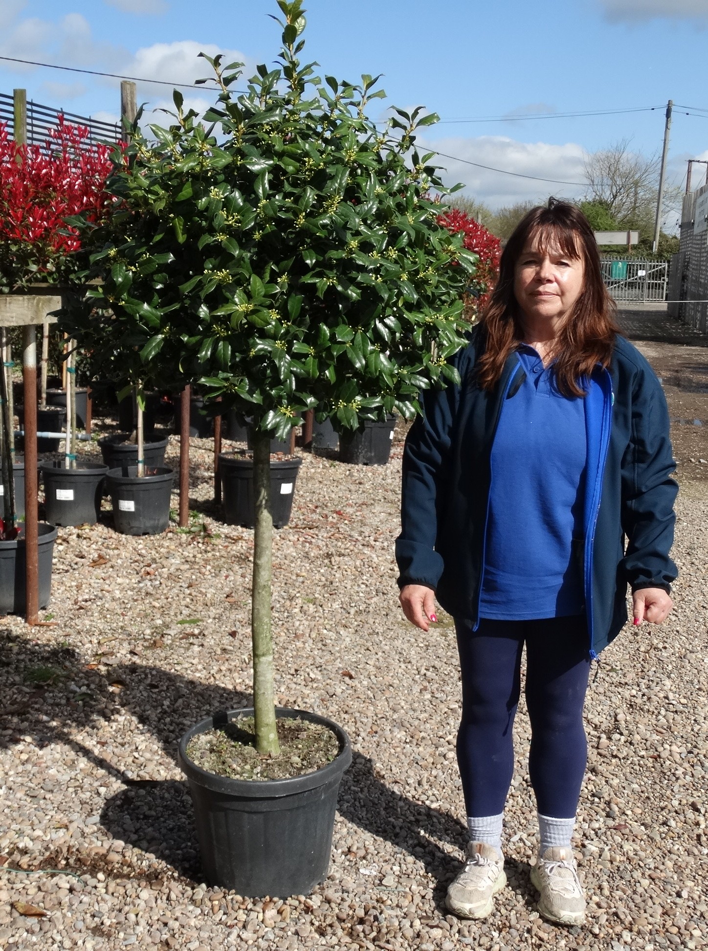 Ilex ‘Nellie R. Stevens’ Holly - A small, ornamental, evergreen tree up to around 8m, with oblong-elliptic, spiny, blackish-green leaves up to 7.5cm long.   This female plant produces white flowers in early summer, followed by profuse orange-red berries in autumn, where there is a male pollinator nearby.   Plant in all types of moist, well drained soil, in full sun or partial shade.   Hardiness rating H6. At certain times of the year the trees and plants that you buy from us may not look like the images shown on our website, this may be due to deciduous leaves falling, or the plant finishing flowering. All photographs on our website are of our own grown stock, or in the case of Italian specimens or bare root hedging, these are photographs of the plants actually in stock.